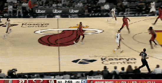 今天開(kāi)拓者打熱火,看看這兩個(gè)回合的攻防有快,兩隊像是4*100的接力賽,幾 乎是全程沖刺跑快攻